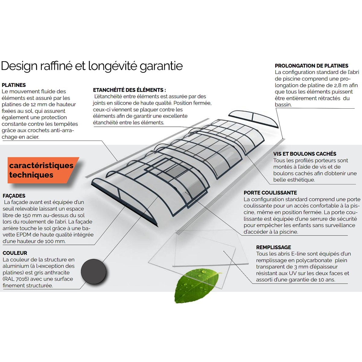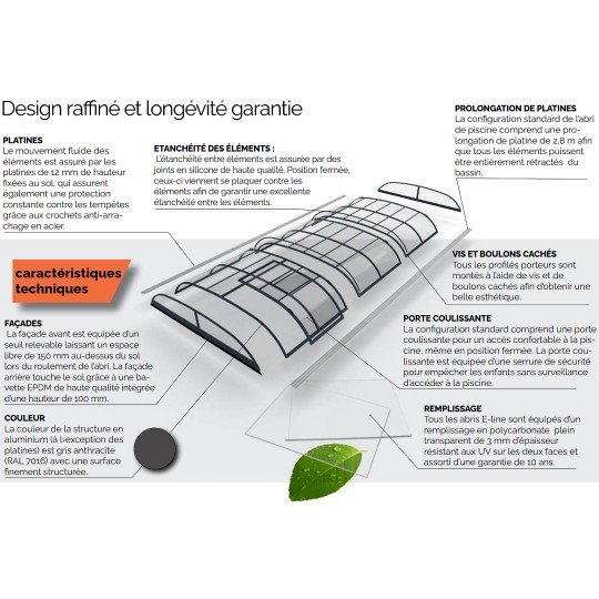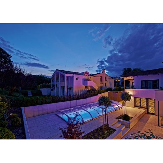 L’abri Bas télescopique Design est un abri de piscine les plus populaire sur le marché. Il est apprécié pour son design arrondit épuré et sa fonctionnalité la plus fluide à manipulé.