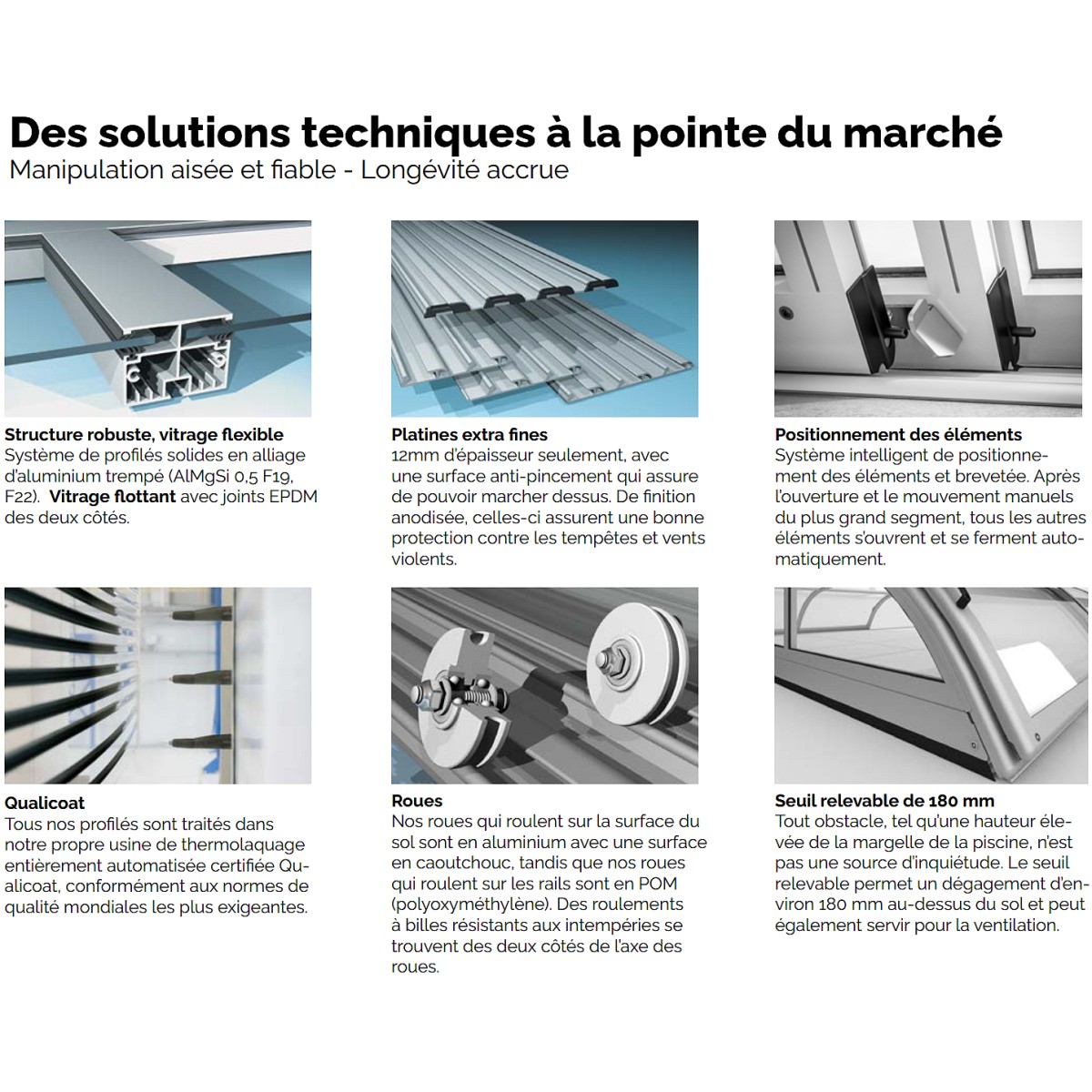 Les roues facilitent l'ouverture et la fermeture de l'abri, elles sont conçu pour duré dans temps notamment avec leurs roulements à billes résistants aux intempéries.