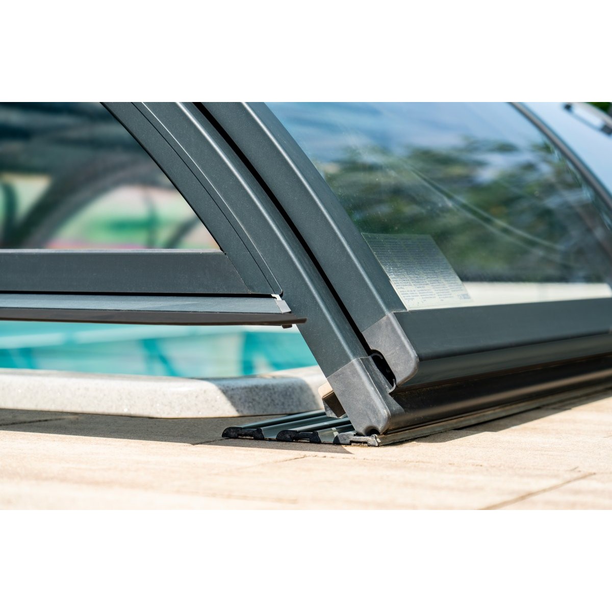 Pour facilité d’accès, une porte coulissante est comprise sur le modèle, afin d'être sécurisé, la porte est équipée d'une serrure pour empêcher l’accès à la piscine aux enfants.