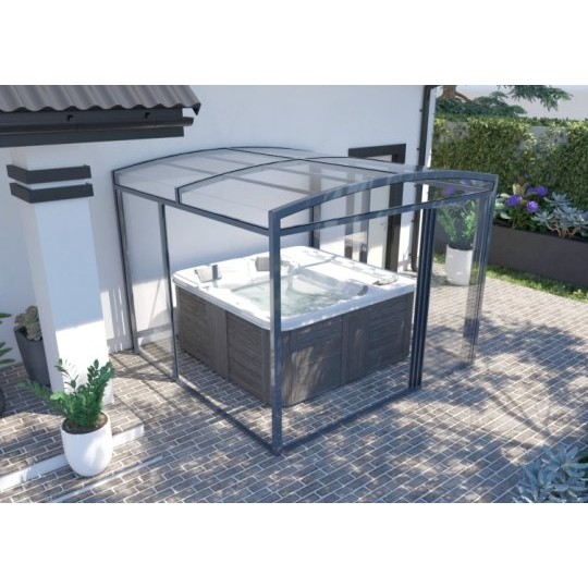 Abri spa CUBIC autonomeSa forme contemporaine en fait une intégration parfaite dans votre extérieur.Son confort d'utilisation pour votre spa et sa protection optimise l'usage de votre spa avec plus de confort.Sur les quatre faces, vous avez deux portes à galandage stocké sur le 3ème panneaux fixe.Personnalisé les axes suivant les saisons et de vos besoins.L'ensemble des parois et toitures sont équipées de plaque de polycarbonate plein 4mm totalement transparente et non sensible à la grêle.C'est 2.40m de hauteur rend l'ouverture de la couverture réalisable et donne un confort d'utilisation pour rentrée et sortir de votre spa.Couleur profil aluminiumBlanc Aluminium texturé (RAL 9006)Blanc texturé (RAL 9010)Gris Anthracite texturé(RAL 7016)Gris Aluminium texturé(RAL 9007)Noir foncé texturé (RAL 9005)Profilés d'un autre coloris RAL (effet bois aussi) : prix de base de l'abri +20%Polycarbonate plein 4 mm transparentEPDM: pour remplissageJoint de silicone posés entre les éléments et sur les façades et fondsParois verticales :3 pcs/côté: 1 fixe, 2 coulissants