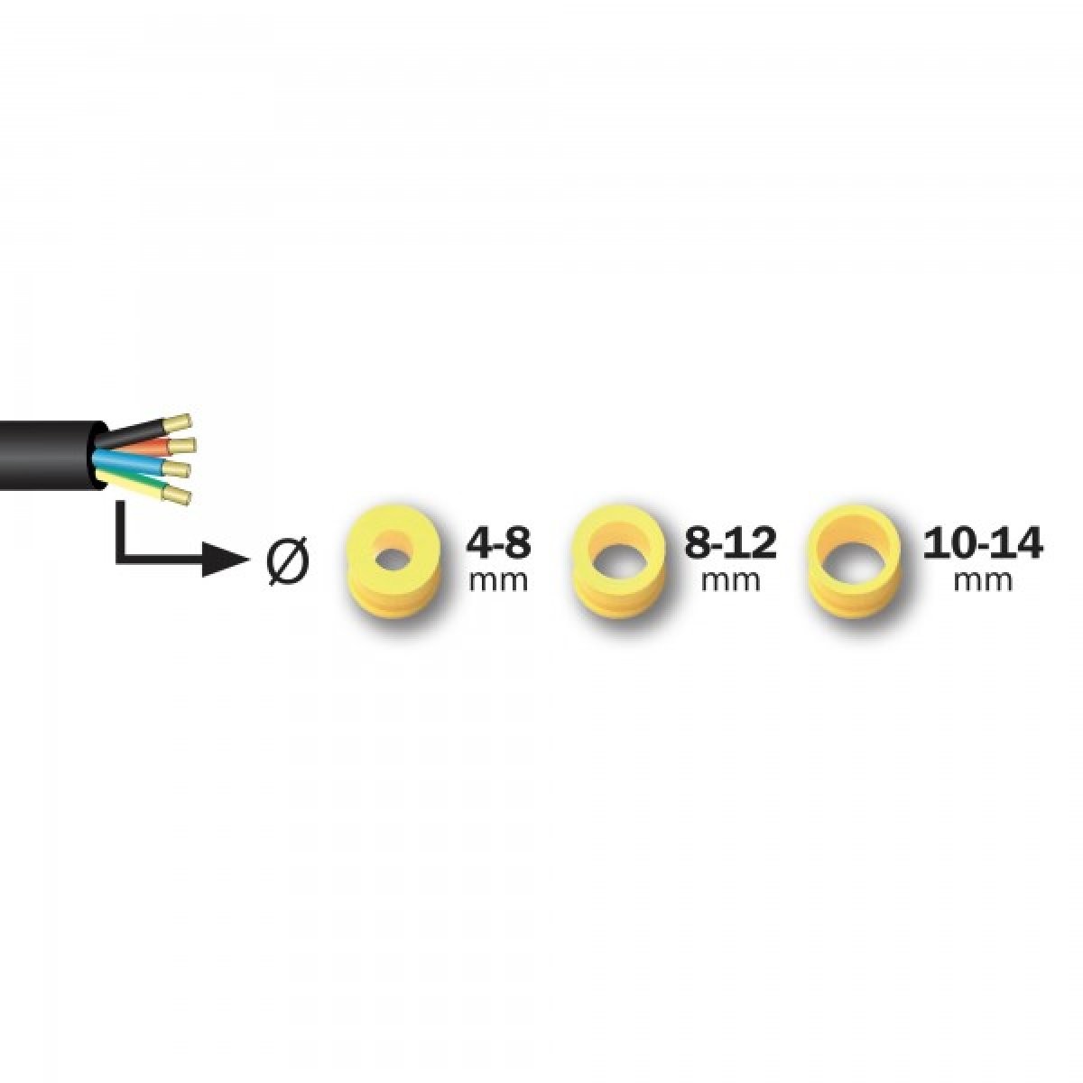 (Ø 4 à 8 mm, Ø 8 à 12 mm, Ø 10 à 14 mm).
