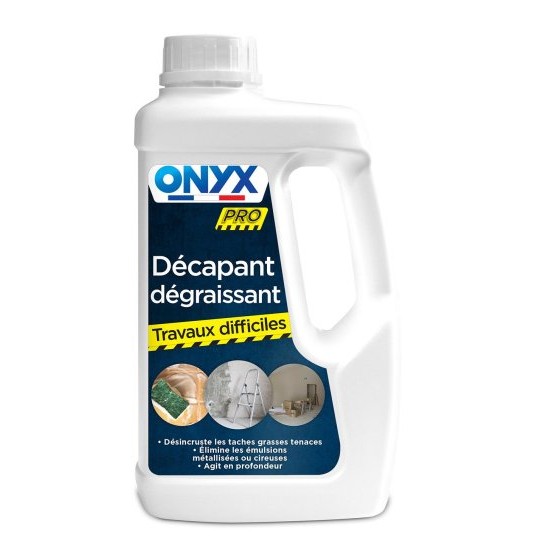 Le Décapant dégraissant Onyx est idéal pour désincruster les taches les plus tenaces, rénover les surfaces et préparer les surfaces en éliminant les émulsions métallisées ou cireuses.