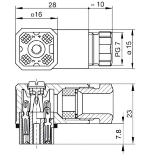 Fiche de connexion de pompe doseuse Carré de 4 contacts.