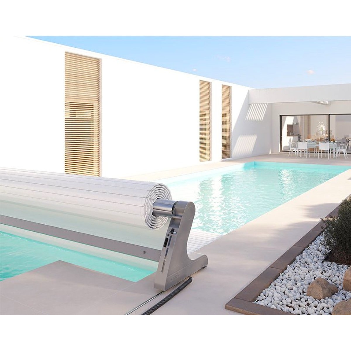 Le nouvel enrouleur Marquise sur rails avec son nouveau design, est une couverture automatique hors-sol s'adaptant aux piscines neuves ou existantes jusqu'à 12 x 6 m maximum .