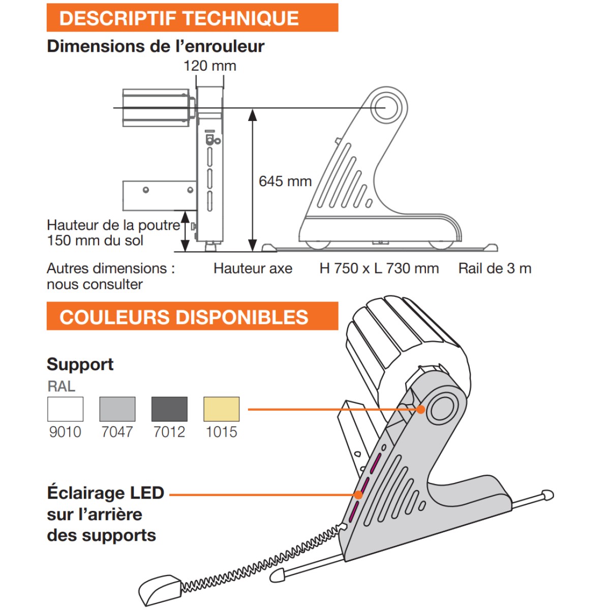 . 1 mécanisme d'enroulement en aluminium anodisé Ø 167mm